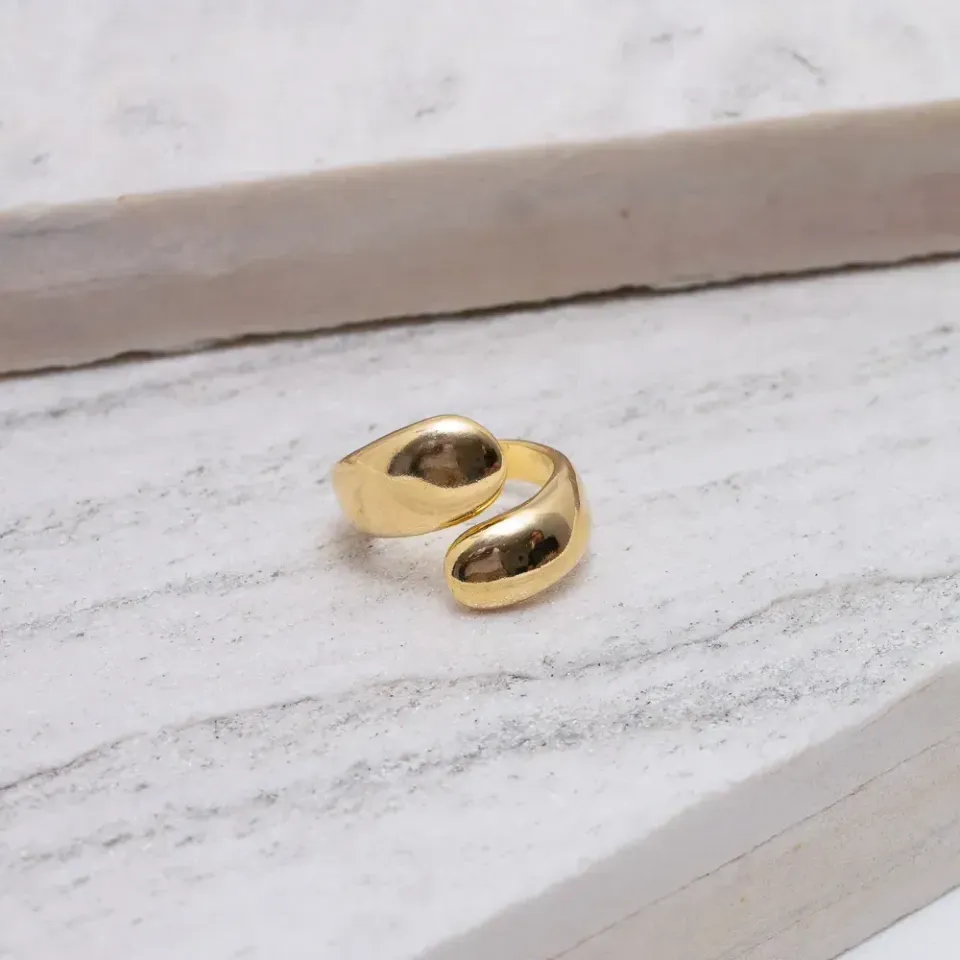 Anel arredondado liso com regulagem em banho Ouro 18K