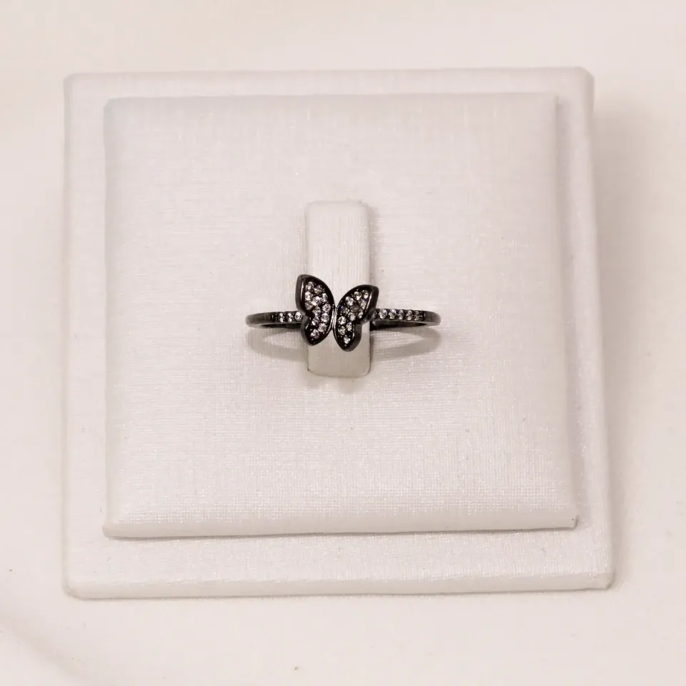 ANEL BORBOLETA COM ZIRCÔNIAS BANHO RÓDIO NEGRO