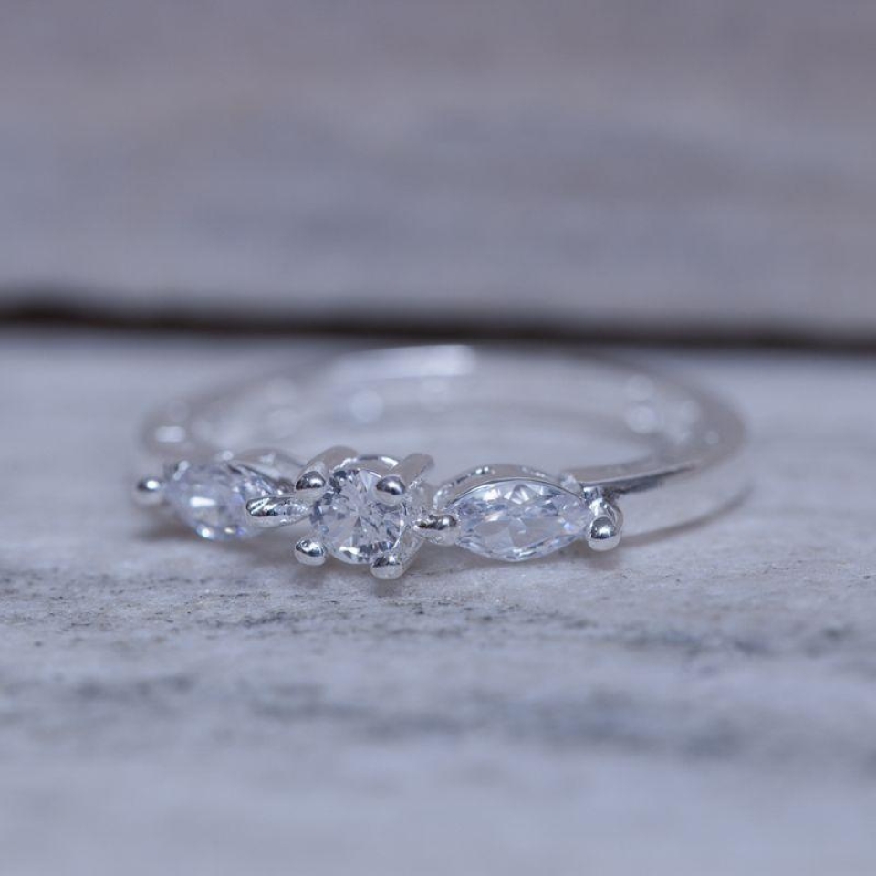 Anel com Pedras Cristais em Banho Prata