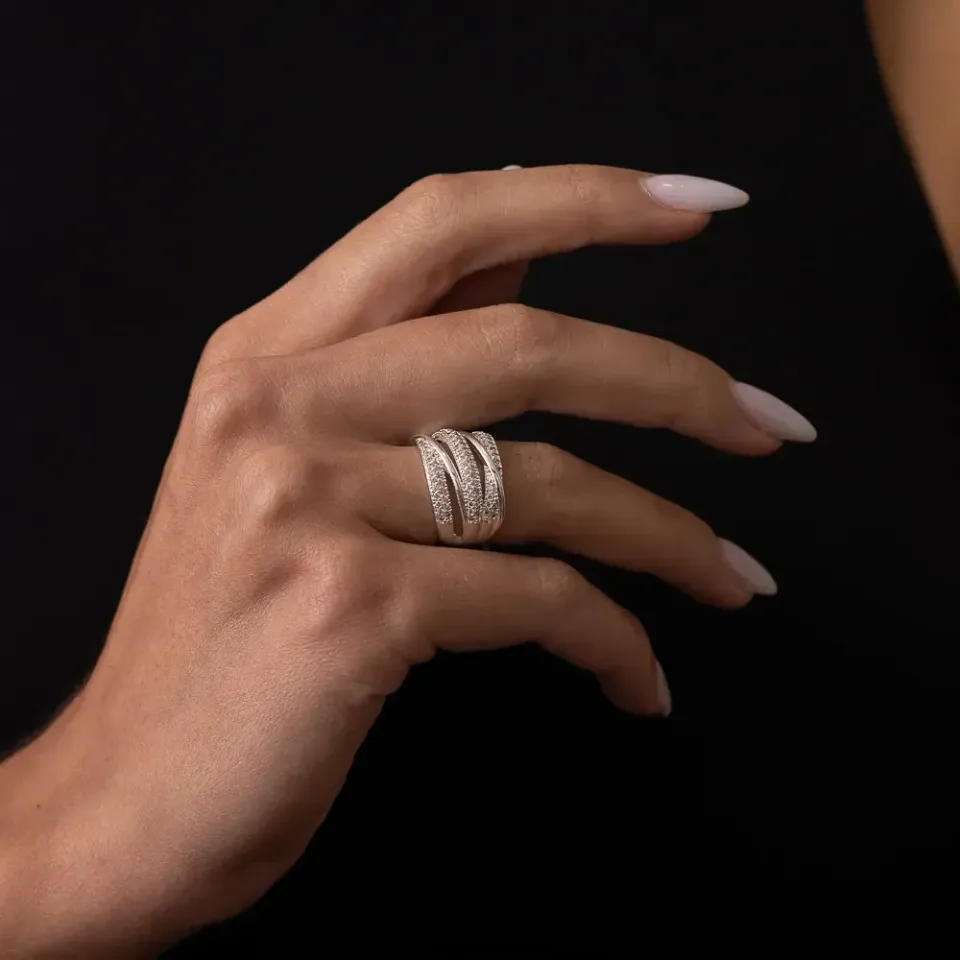 Anel Cravejado com Zircônias Cristais em banho Prata