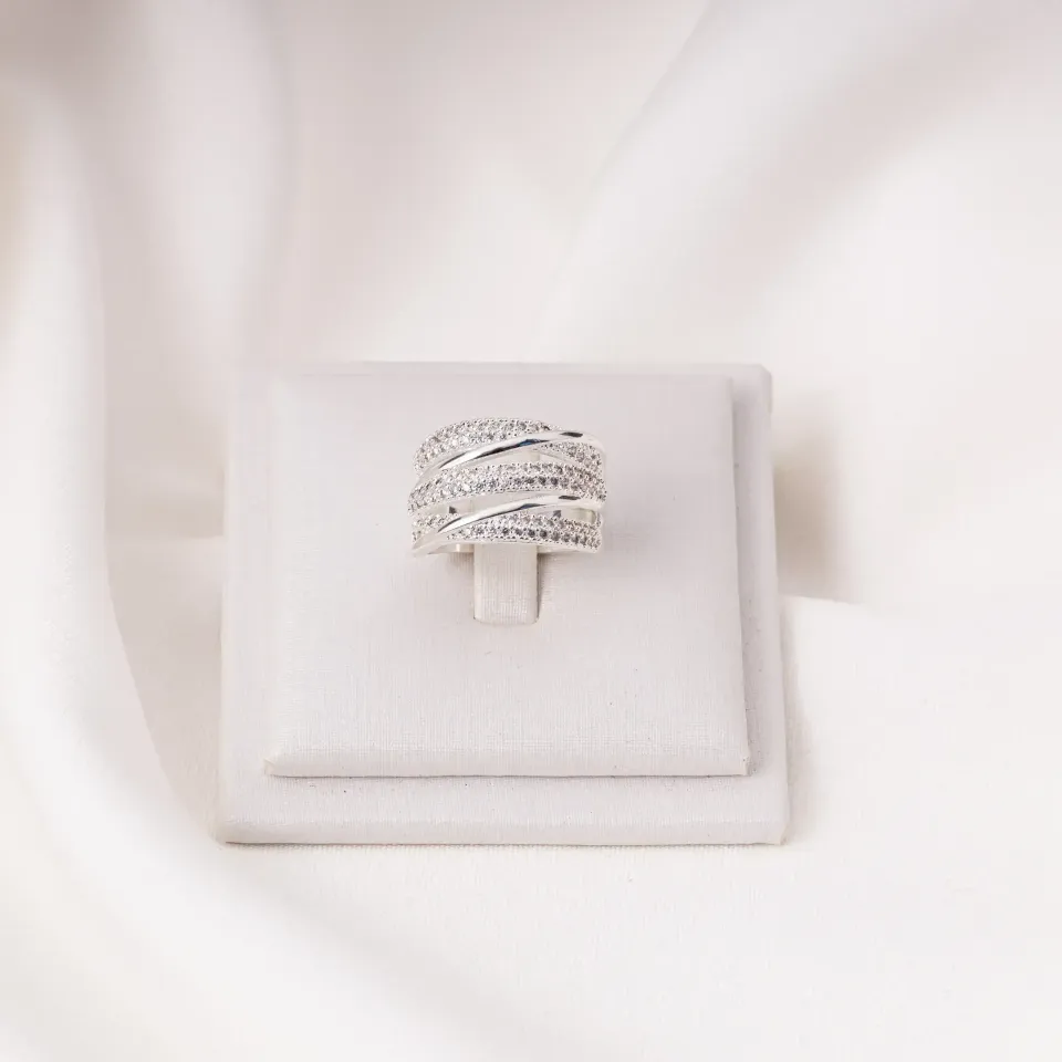 ANEL CRAVEJADO COM ZIRCÔNIAS CRISTAIS BANHO PRATA