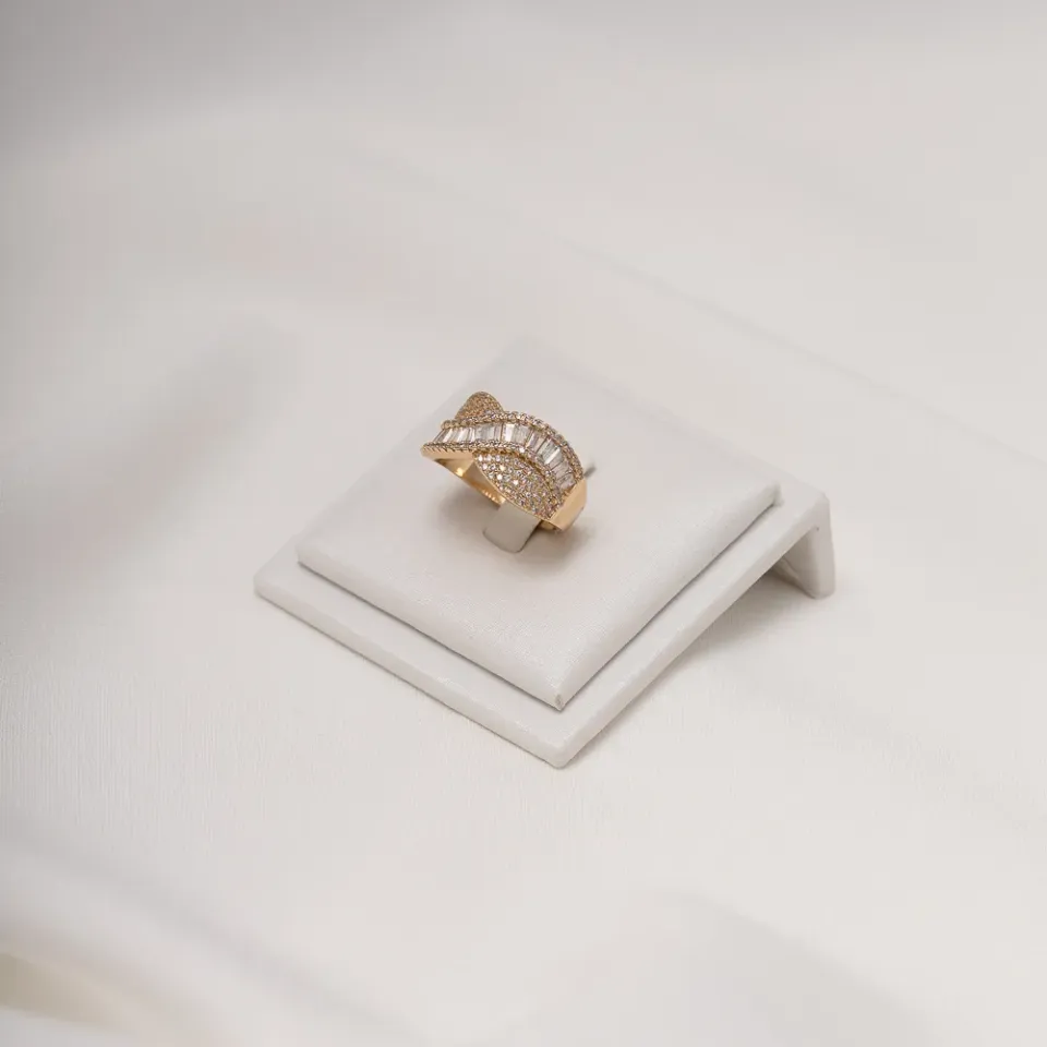 ANEL COM ZIRCÔNIA NAVETE BANHO OURO 18K