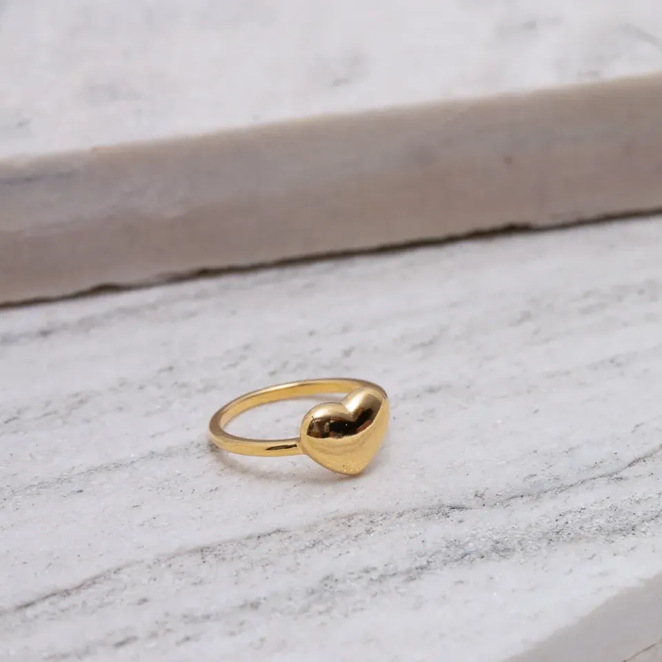 ANEL CORAÇÃO LISO M BANHO OURO 18K