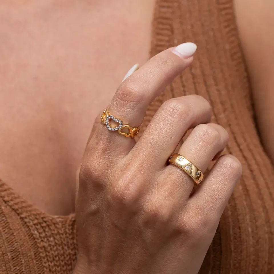 ANEL CORAÇÕES VAZADOS E COM ZIRCÔNIA BANHO OURO 18K