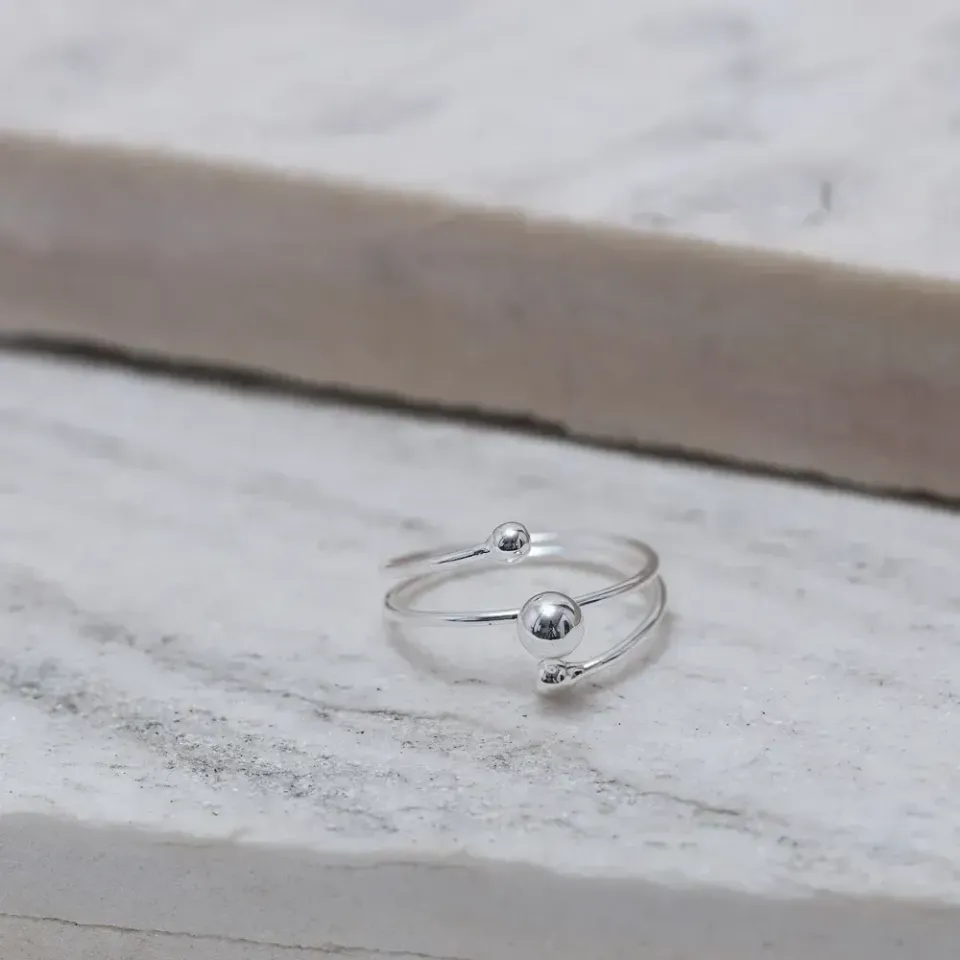 Anel Triplo com Três Esferas em banho Prata
