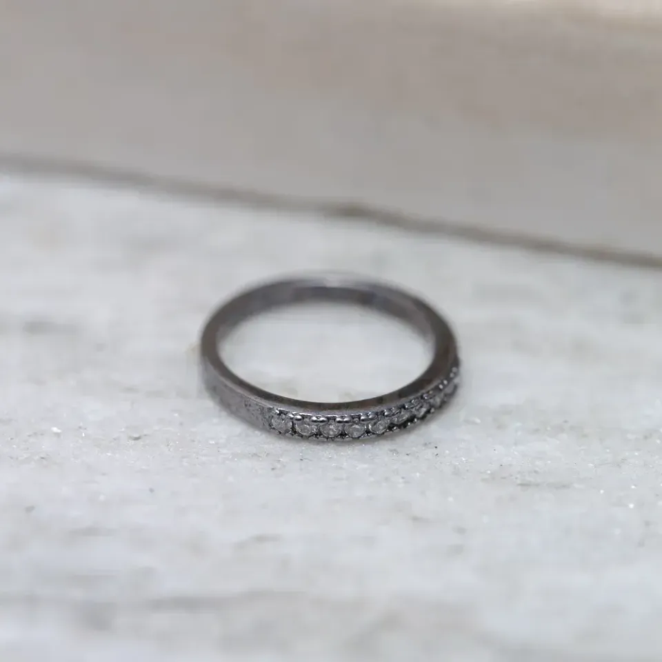 Anel Falange com zircônias cristais em banho Ródio Negro
