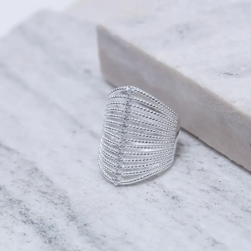 ANEL FILEIRAS COM ZIRCÔNIAS BANHO PRATA