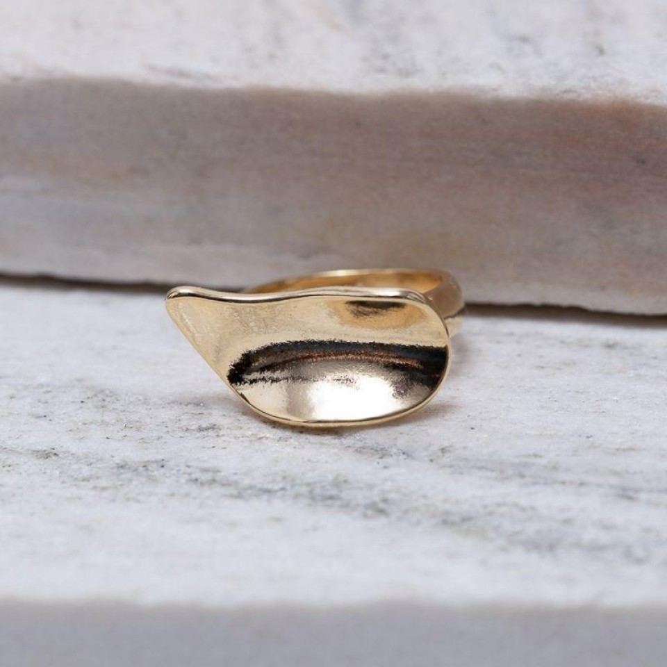 ANEL FOLHA ORGÂNICA LISA BANHO OURO 18K