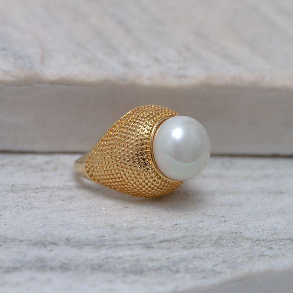 ANEL GRANDE COM PÉROLA BANHO OURO 18K