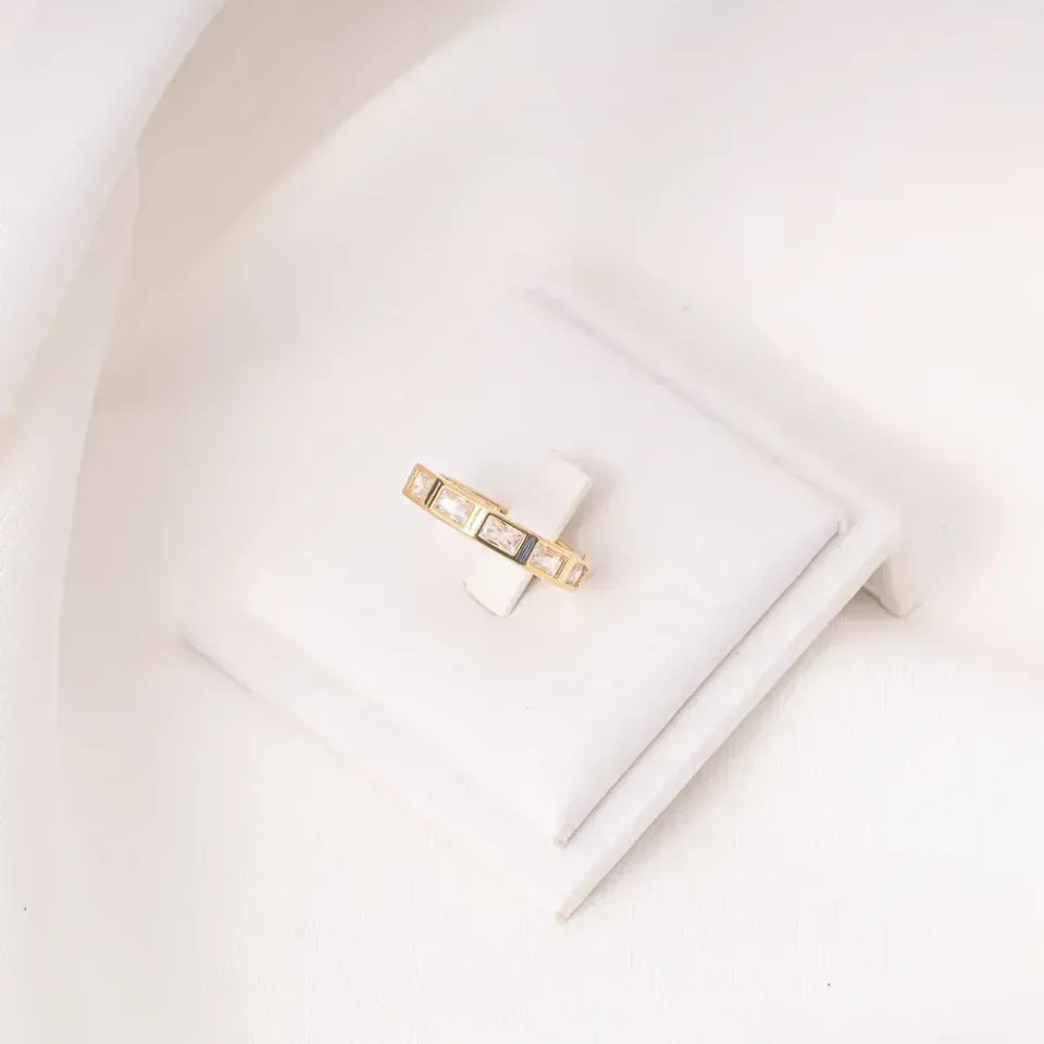 ANEL QUADRADOS CRISTAIS BANHO OURO 18K