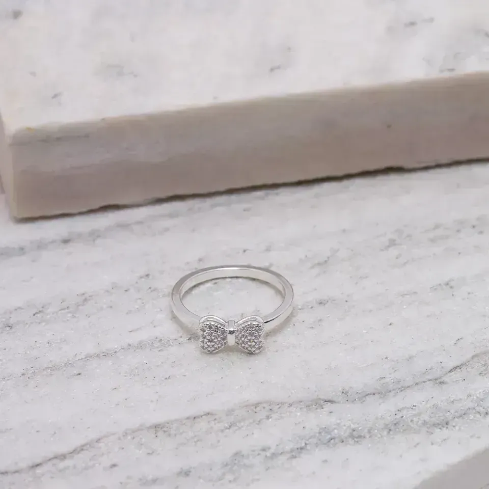 Anel de laço cravejado com zircônias cristais em banho Prata