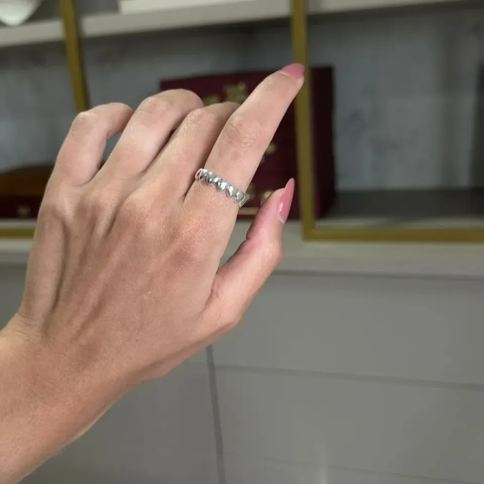 ANEL CORAÇÕES LISOS BANHO PRATA