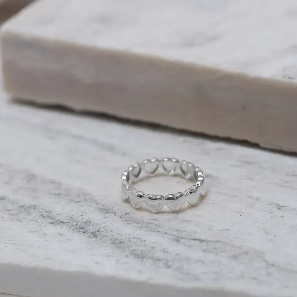 Anel Corações Lisos em banho Prata
