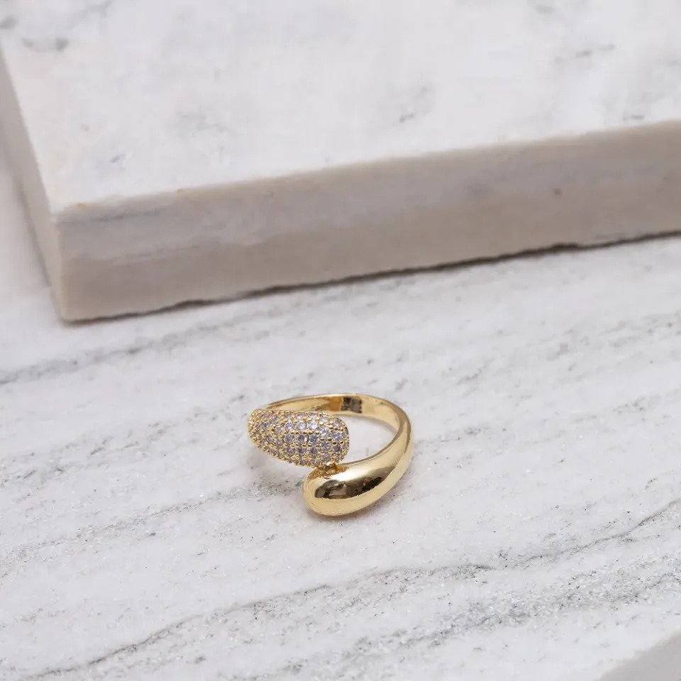 ANEL LISO E COM ZIRCÔNIA VINTAGE BANHO OURO 18K