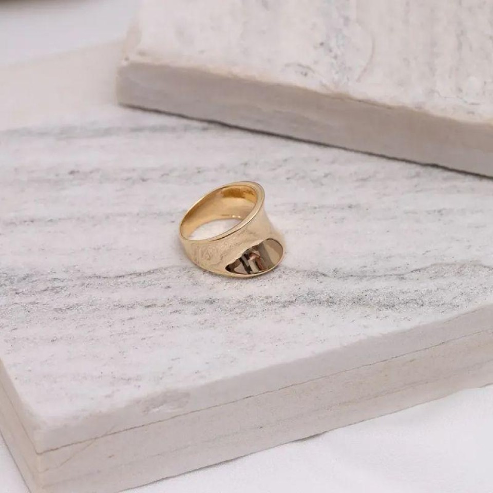 ANEL LISO GRANDE BANHO OURO 18K