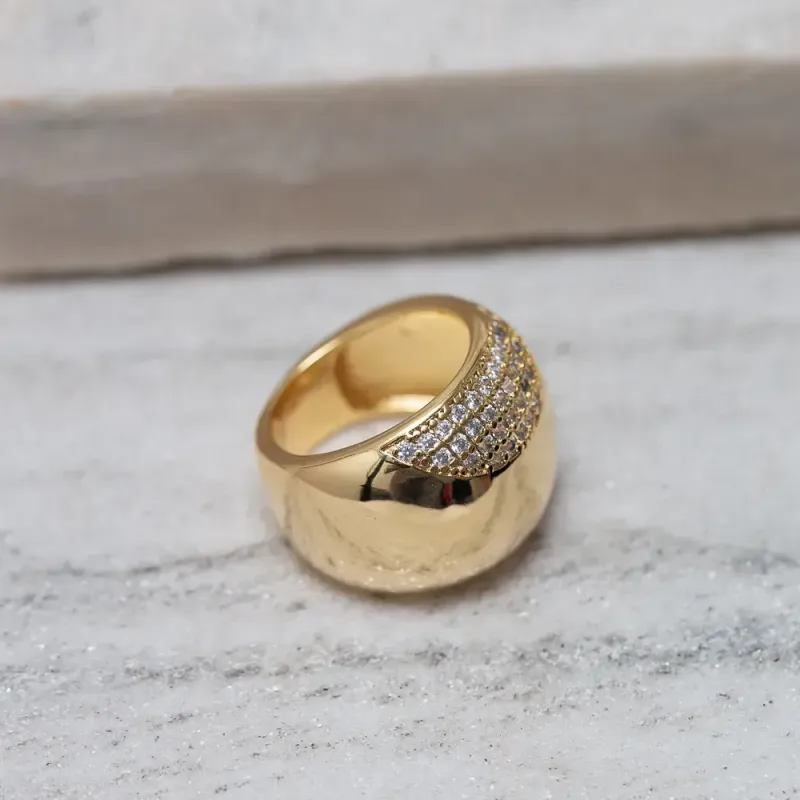 ANEL GRANDE LISO E COM ZIRCÔNIAS BANHO OURO 18K