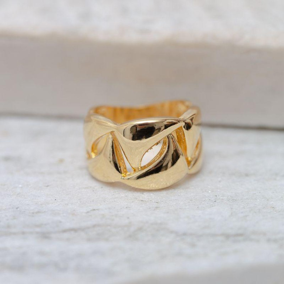 ANEL LISO TRABALHADO BANHO OURO 18K