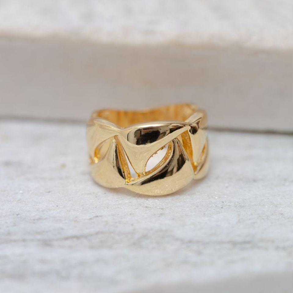 ANEL LISO TRABALHADO BANHO OURO 18K