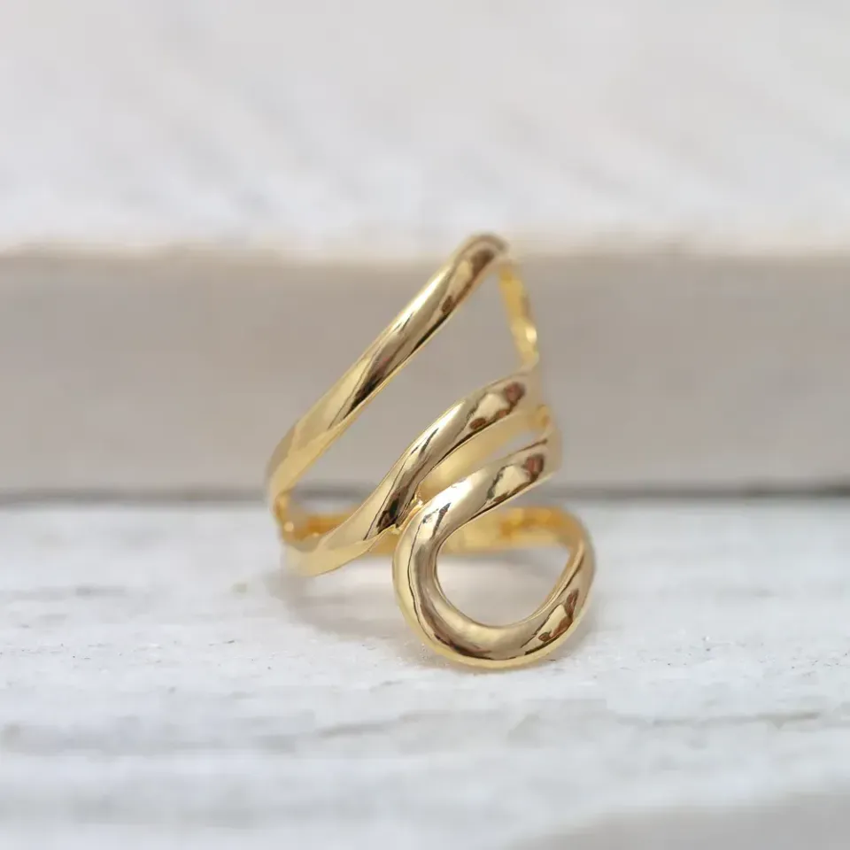 ANEL LISO VAZADO BANHO OURO 18K