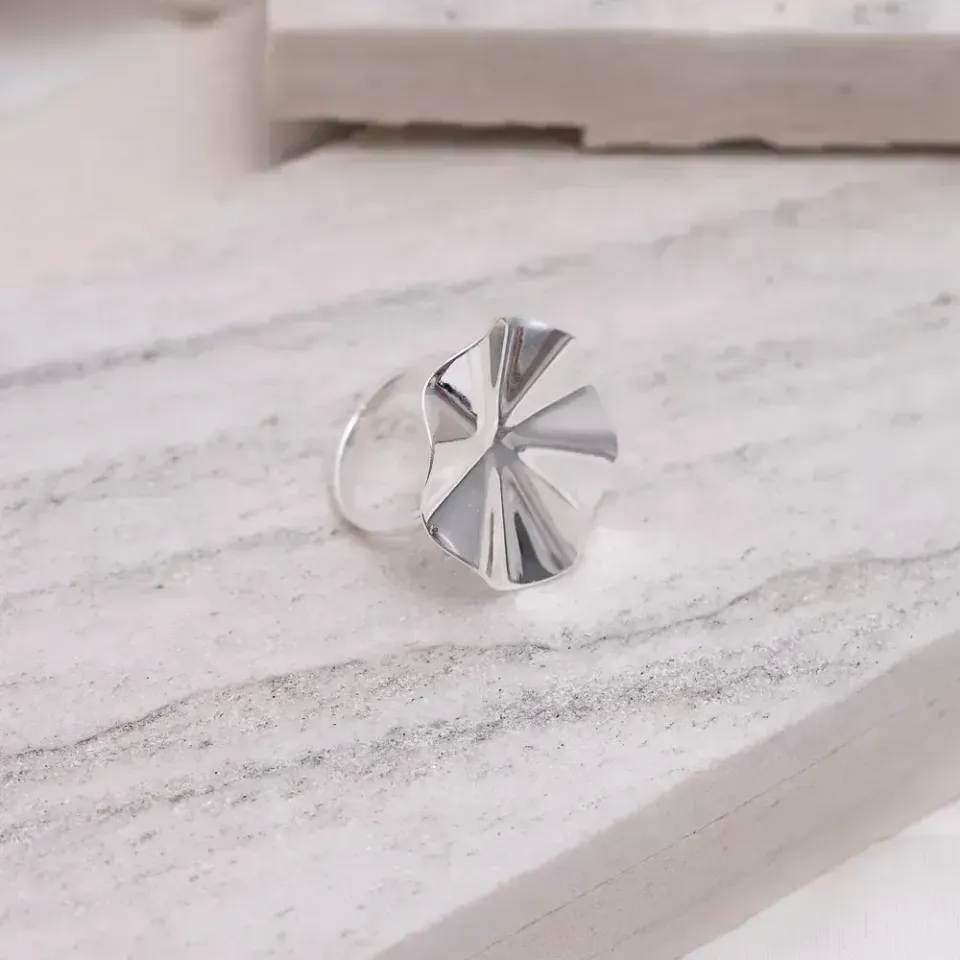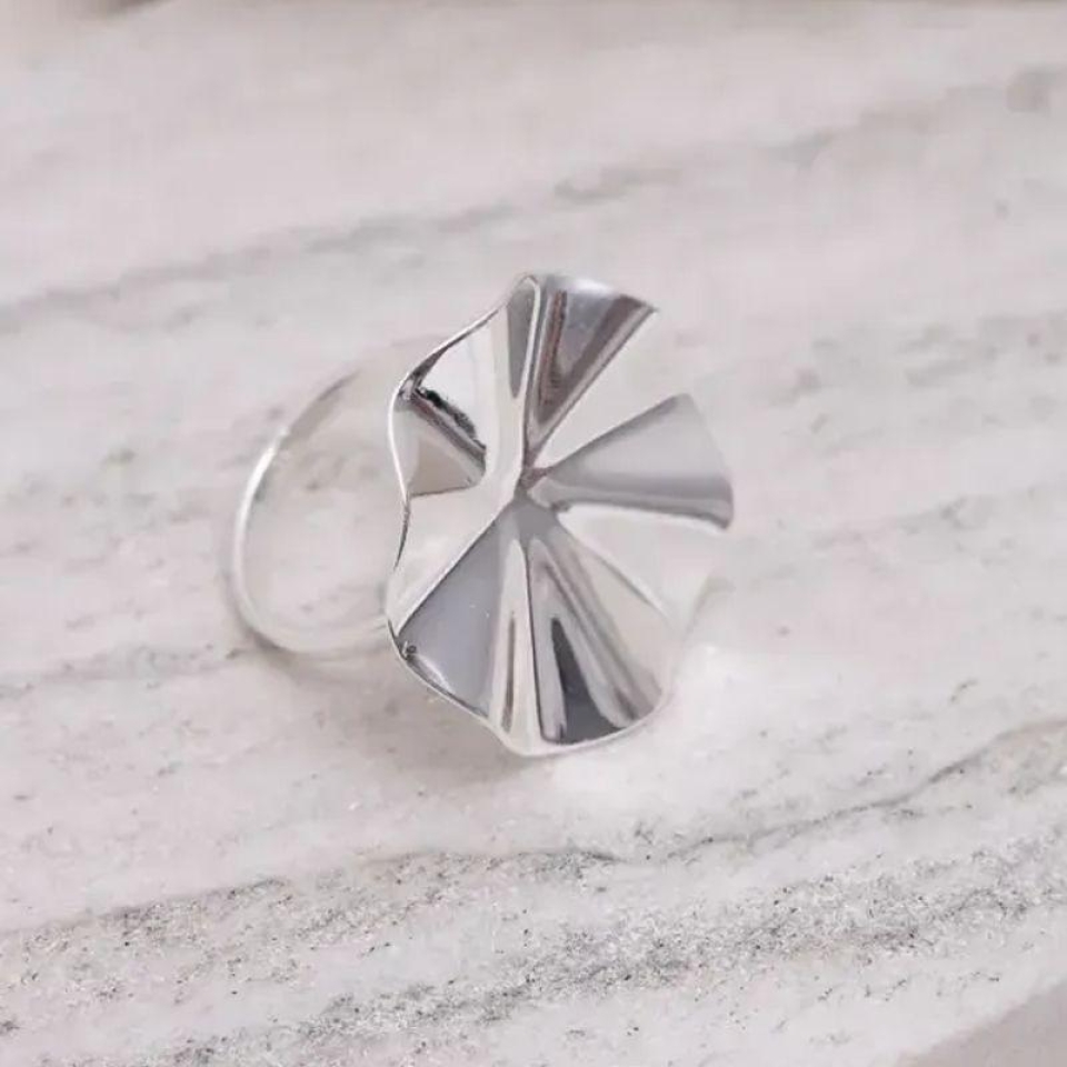 ANEL ORGÂNICO AMASSADO GRANDE BANHO PRATA18K