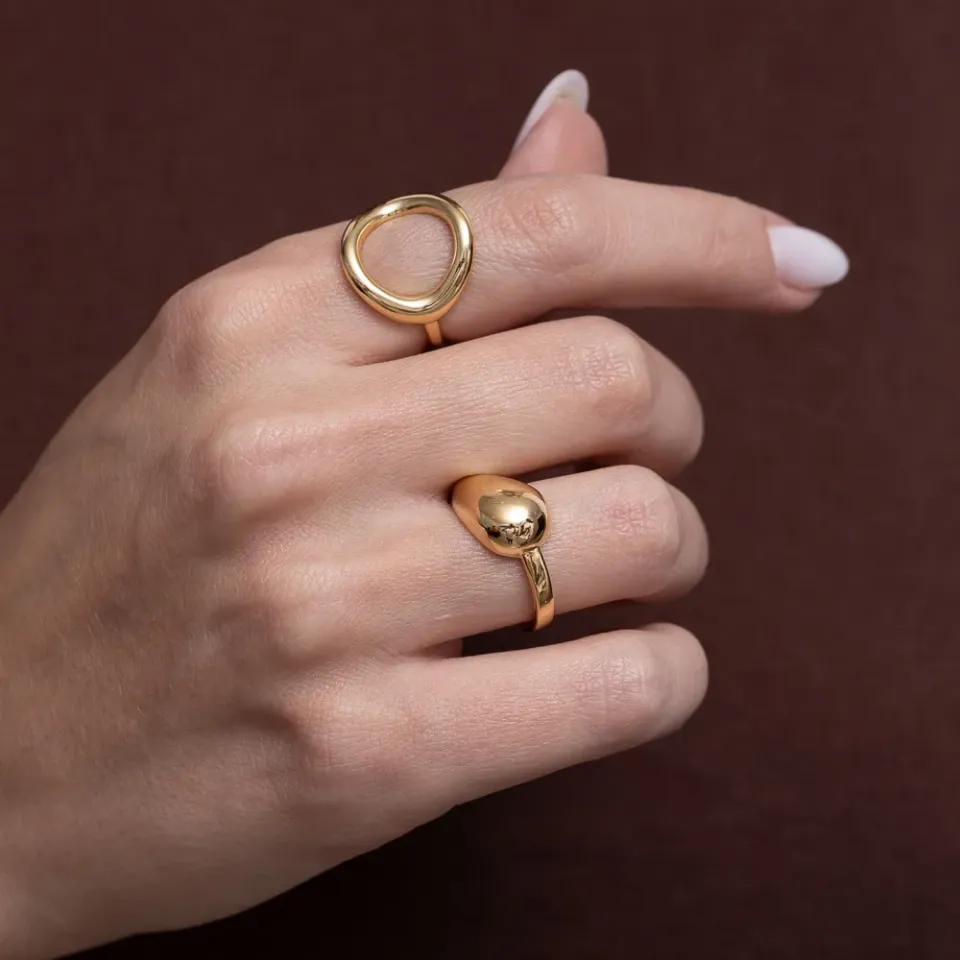 ANEL GOTA LISO ABAULADO REGULÁVEL BANHO OURO 18K