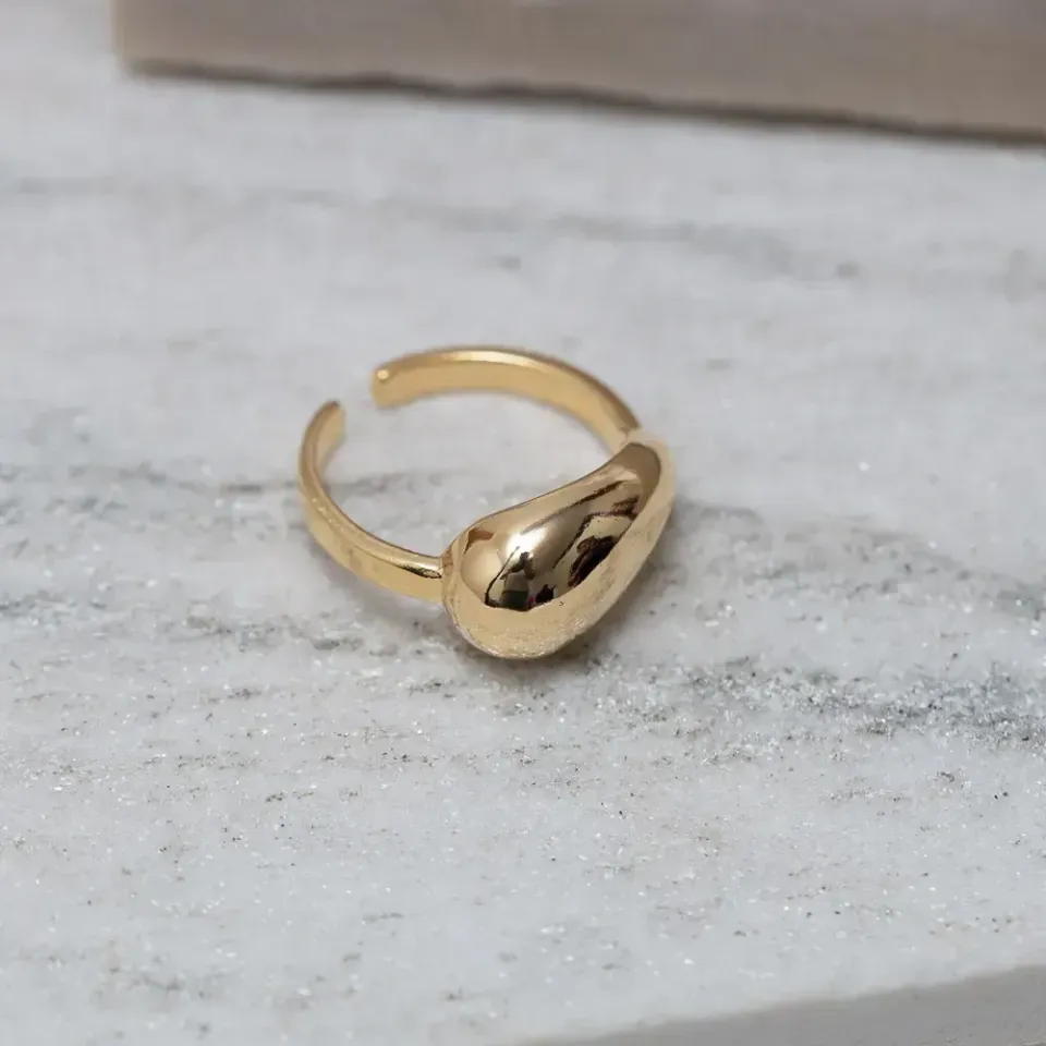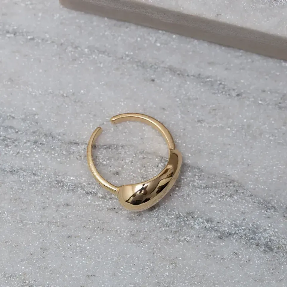 Anel Gota Liso Abaulado Regulável em banho Ouro 18K