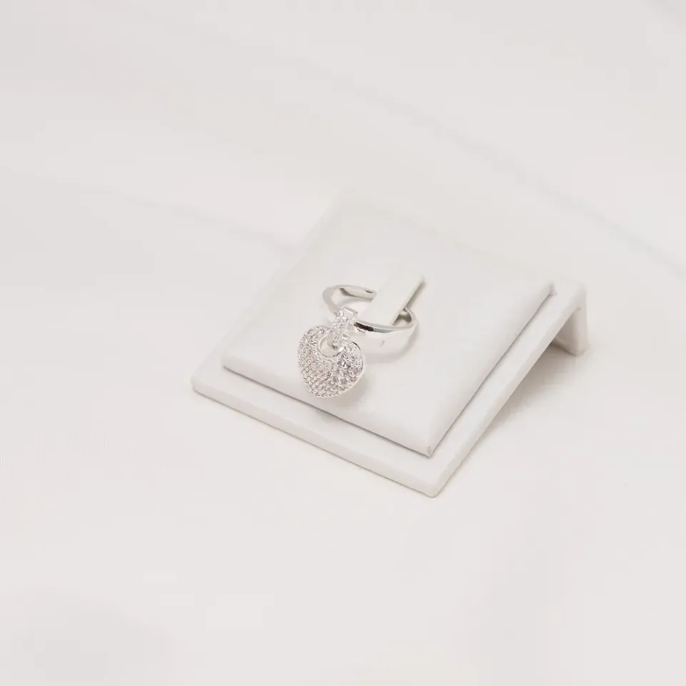 ANEL PINGENTE DE CORAÇÃO COM ZIRCÔNIA BANHO PRATA