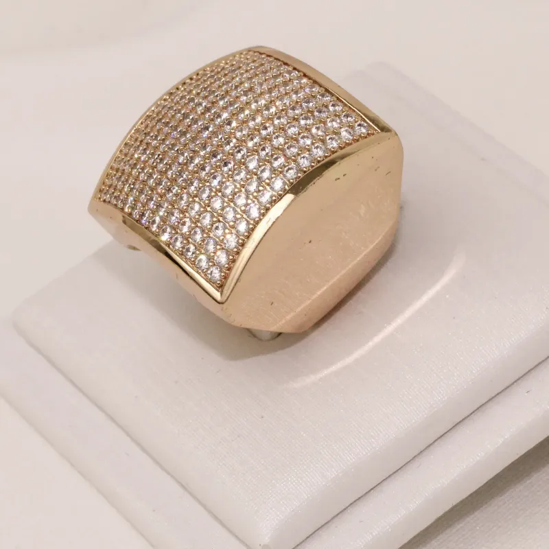 ANEL QUADRADO CRAVEJADO COM ZIRCÔNIAS CRISTAIS BANHO OURO 18K