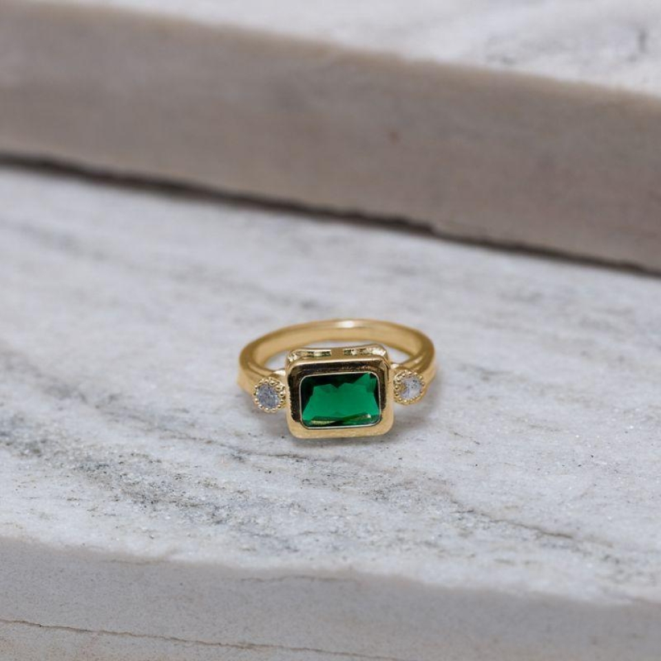 Anel Quadrado com Pedra Verde Esmeralda em banho Ouro 18K