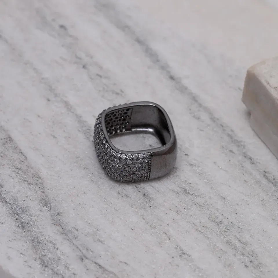 ANEL QUADRADO ZIRCÔNIAS BANHO RÓDIO NEGRO
