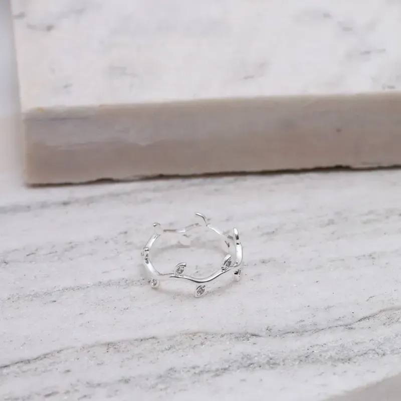 Anel Raminhos Cravejados com Zircônias Cristais em banho Prata