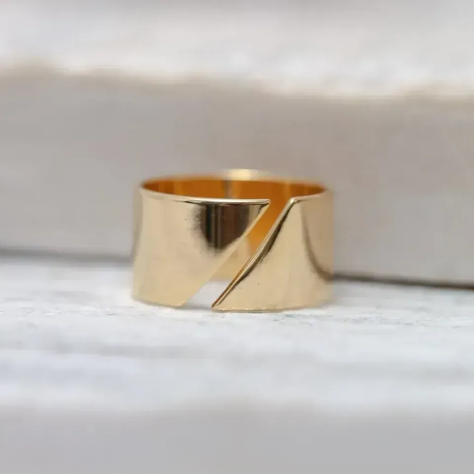ANEL REGULAGEM GROSSO LISO BANHO OURO 18K