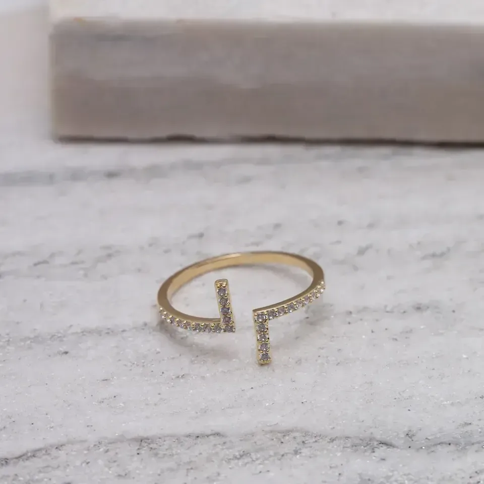 ANEL REGULÁVEL ABERTO COM ZIRCÔNIAS BANHO OURO 18K