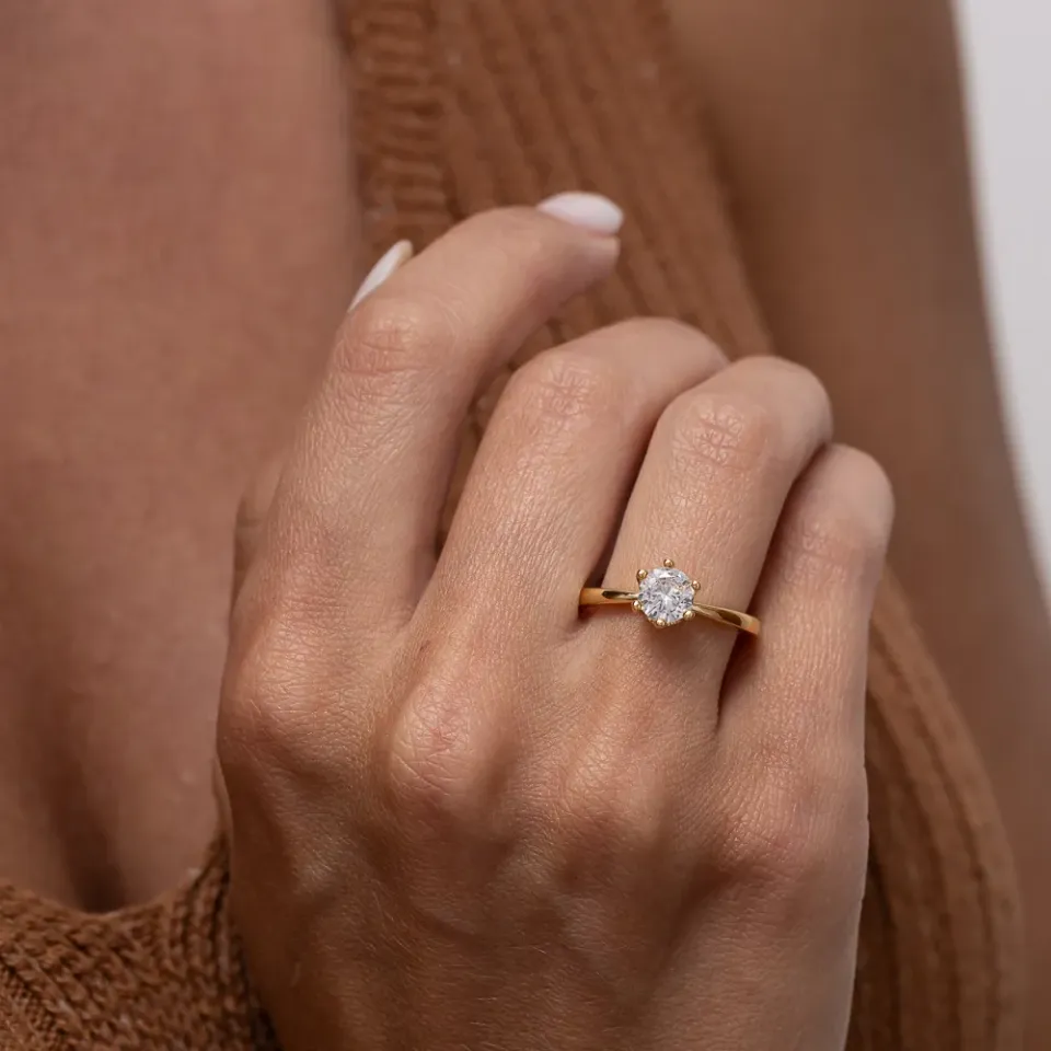 Anel Solitário 6 Pontos Ctistal M banho Ouro 18K