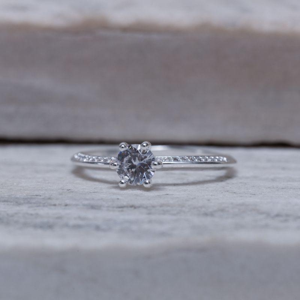 ANEL SOLITÁRIO CRAVEJADO BANHO PRATA