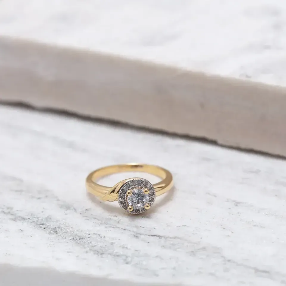 Anel Solitário Detalhe Torcido em banho Ouro 18K
