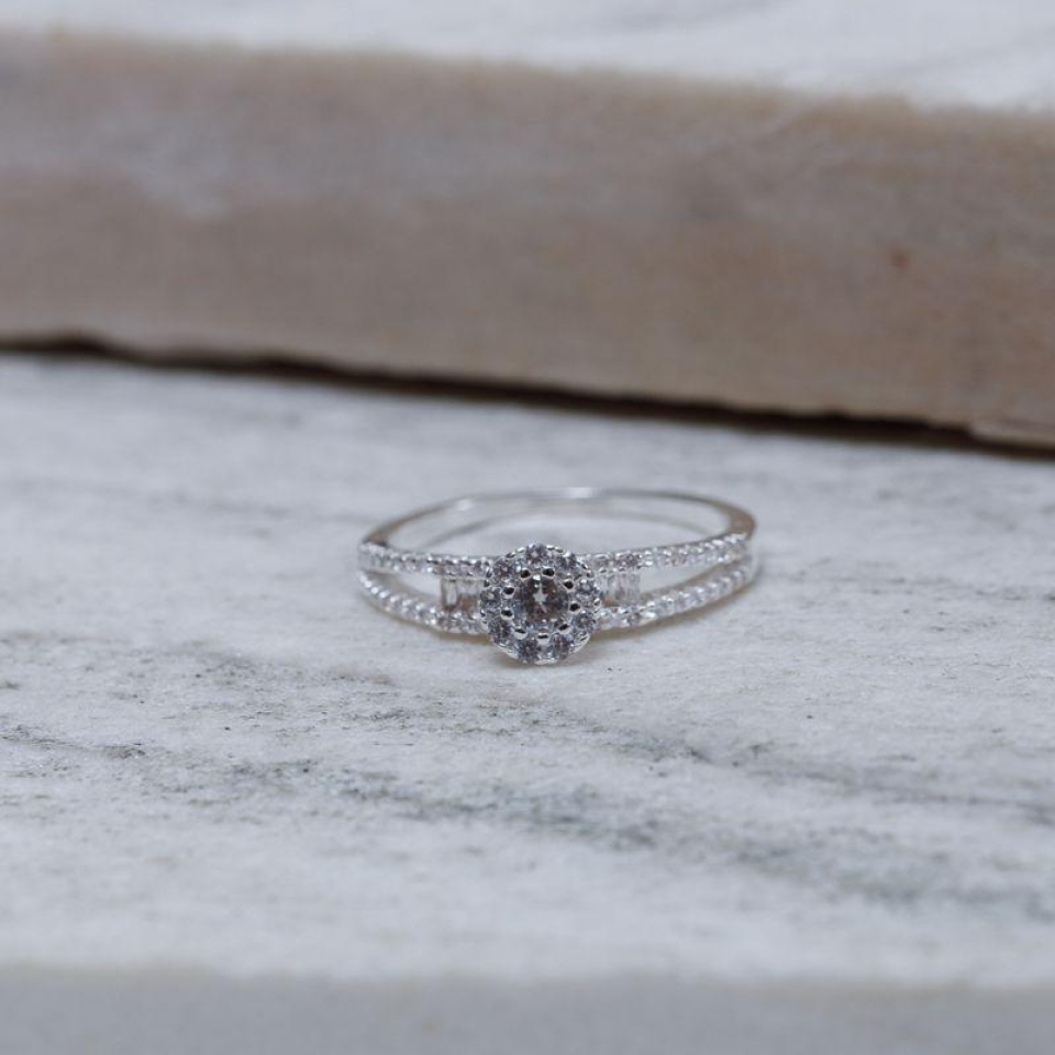ANEL SOLITÁRIO FILEIRA DUPLA BANHO PRATA