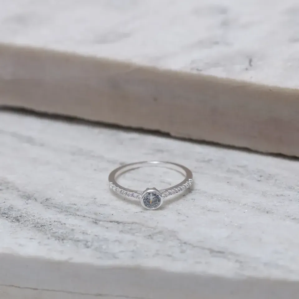 ANEL SOLITÁRIO REDONDO CRAVEJADO BANHO PRATA