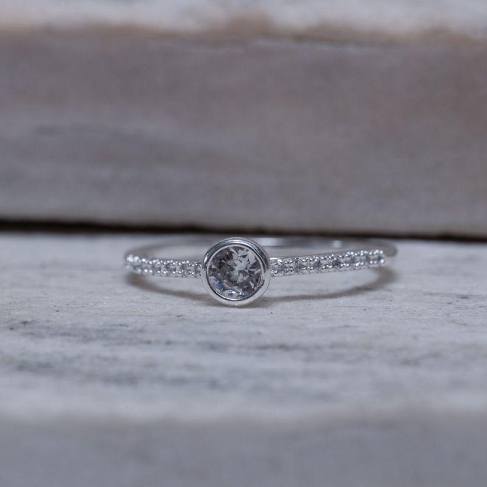 ANEL SOLITÁRIO REDONDO CRAVEJADO BANHO PRATA
