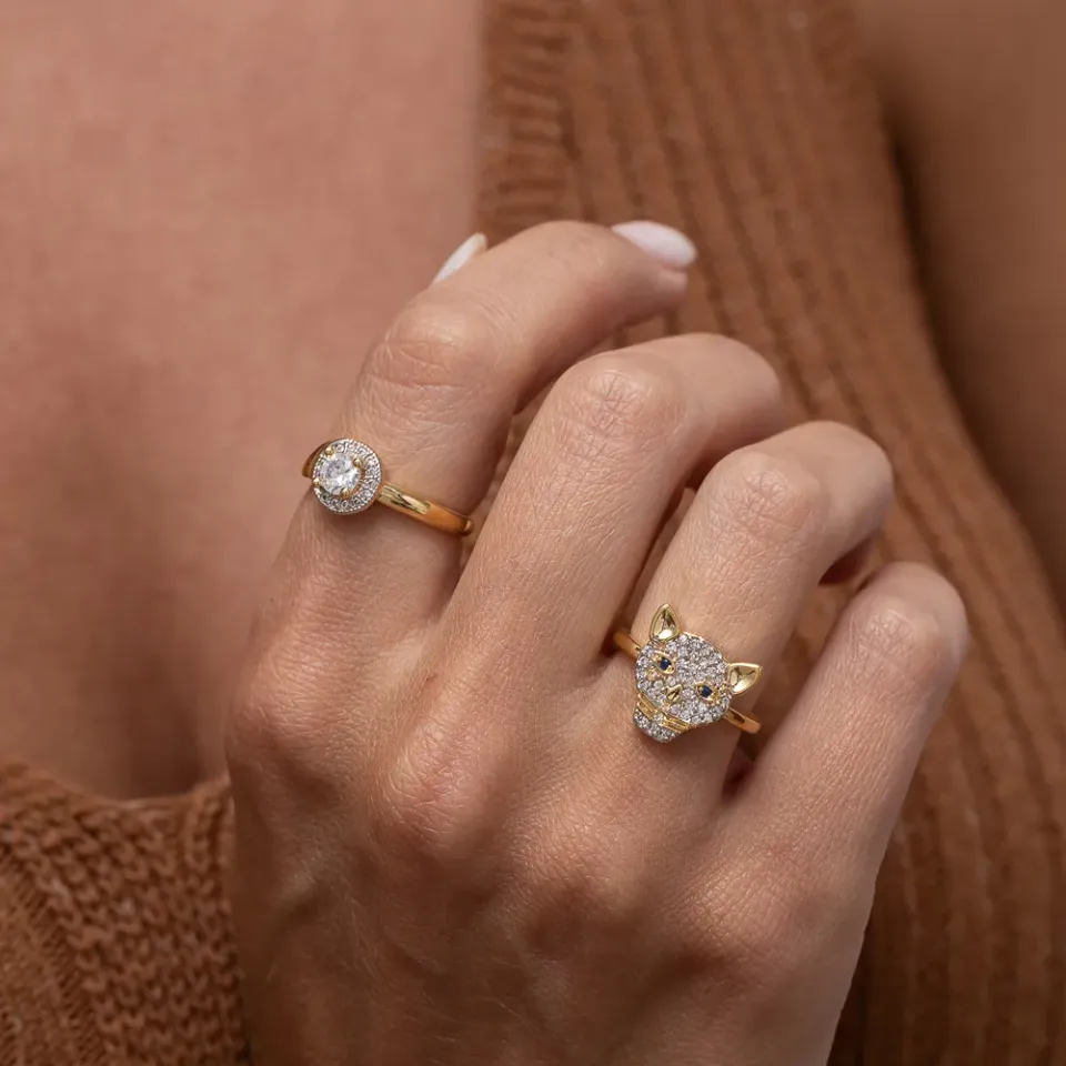 ANEL TIGRE CRAVEJADO COM OLHO AZUL BANHO OURO 18K
