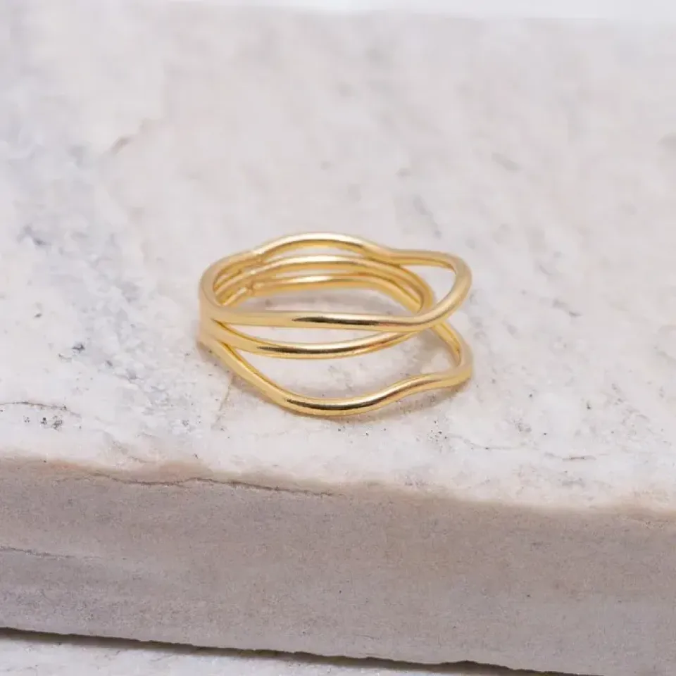 ANEL TRÊS AROS ABERTOS BANHO OURO 18K