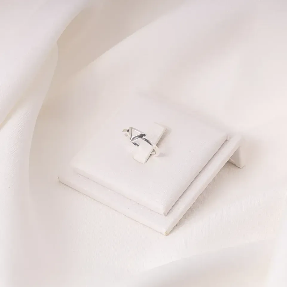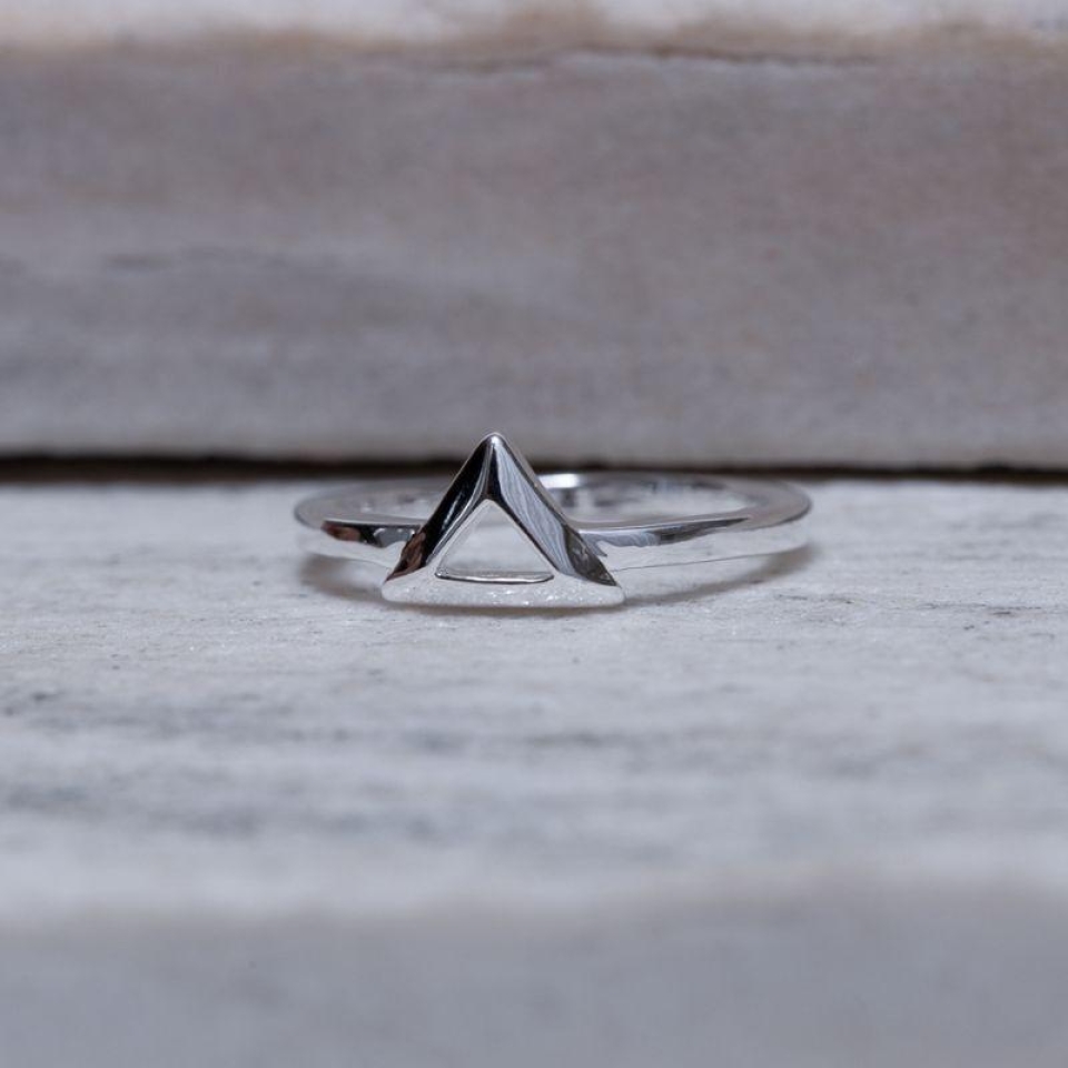 ANEL TRIÂNGULO LISO BANHO PRATA