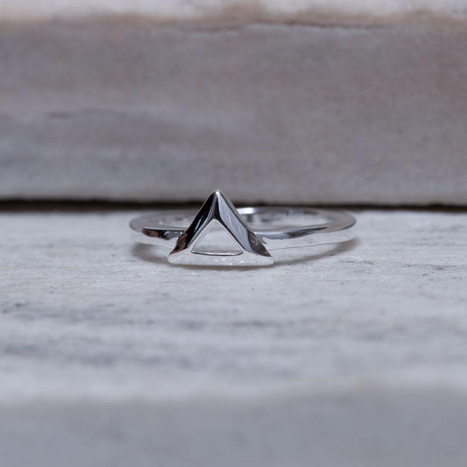 Anel Triângulo Liso Vazado banho Prata