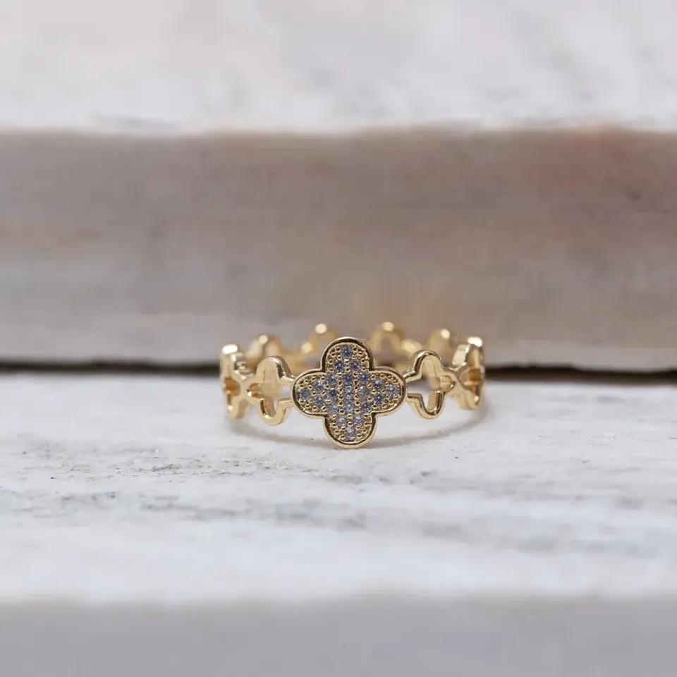 ANEL VIRGINIA CRAVEJADO E LISO VAZADO BANHO OURO 18K