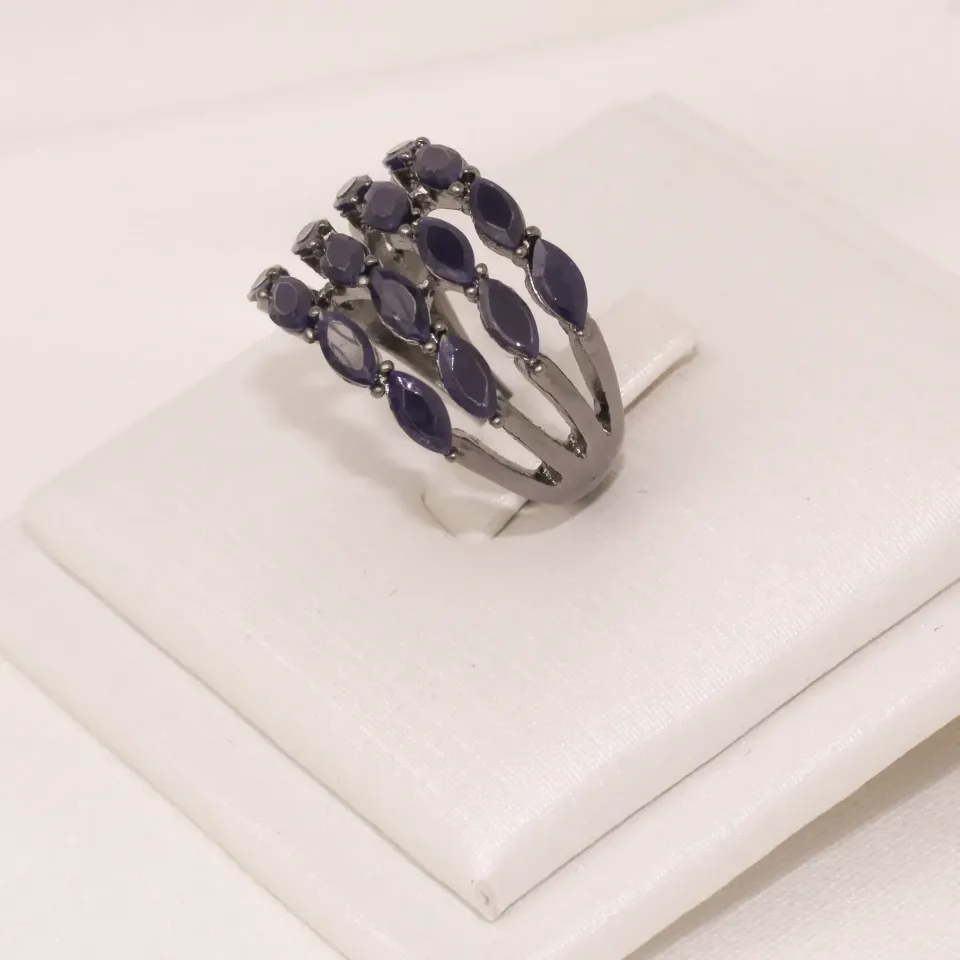 ANEL COM ZIRCÔNIA LEITOSA AZUL RÓDIO NEGRO