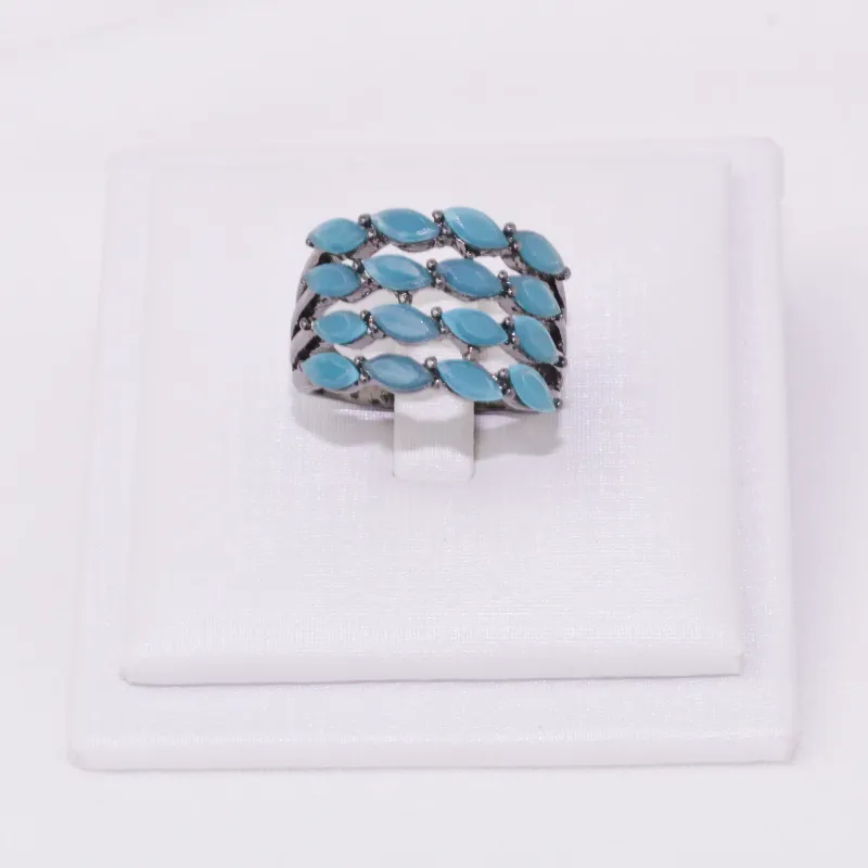 ANEL ZIRCÔNIA LEITOSA AZUL CLARO BANHO RÓDIO NEGRO