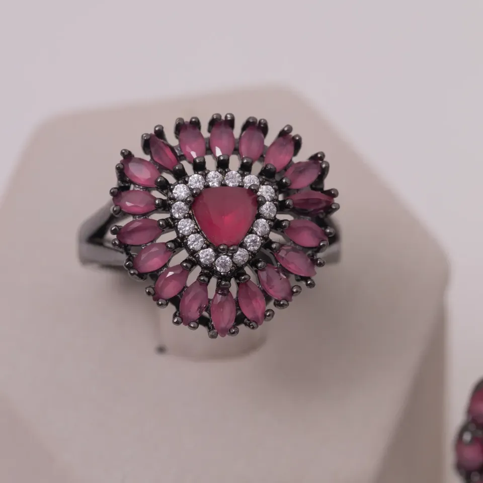 ANEL ZIRCÔNIA LEITOSA MARSALA BANHO RÓDIO NEGRO