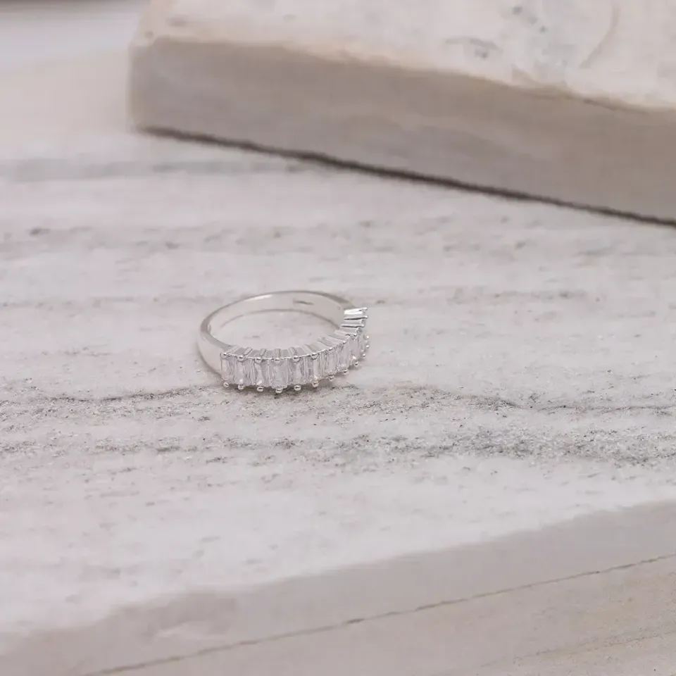 ANEL COM ZIRCÔNIAS NAVETE CRISTAIS BANHO PRATA