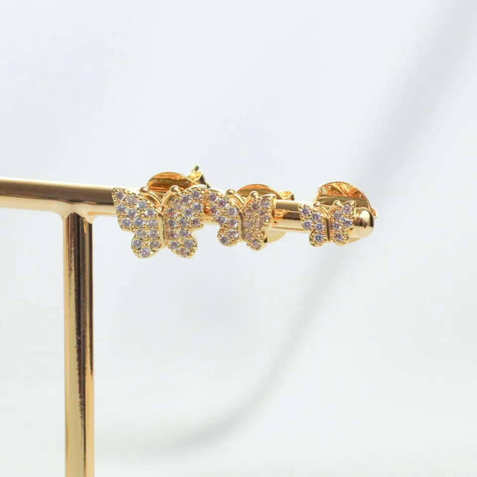 BINCO BORBOLETA EM ZIRCÔNIA M BANHO OURO 18K