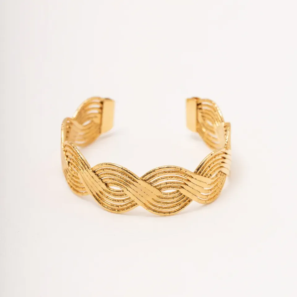 BRACELE LARGO TRANÇADO BANHO OURO 18K